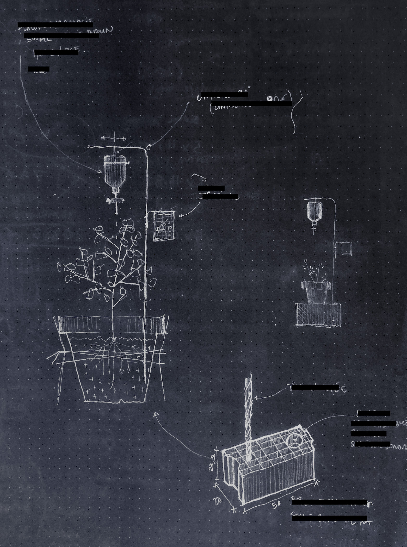 Il a été dessiné pour une installation de Wiki Prairie School dans une des écuries du château de Versailles pour la deuxième édition de la biennale d’architecture et de paysage (BAP). Une centaine de plantes étaient hydratées au goutte-à-goutte par cet objet.